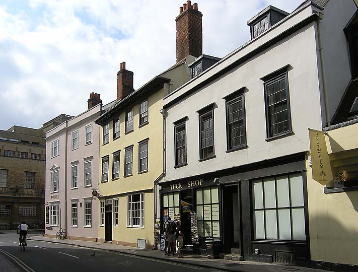 In Oriel Street (off the High Street) a row of stuccoed houses. The